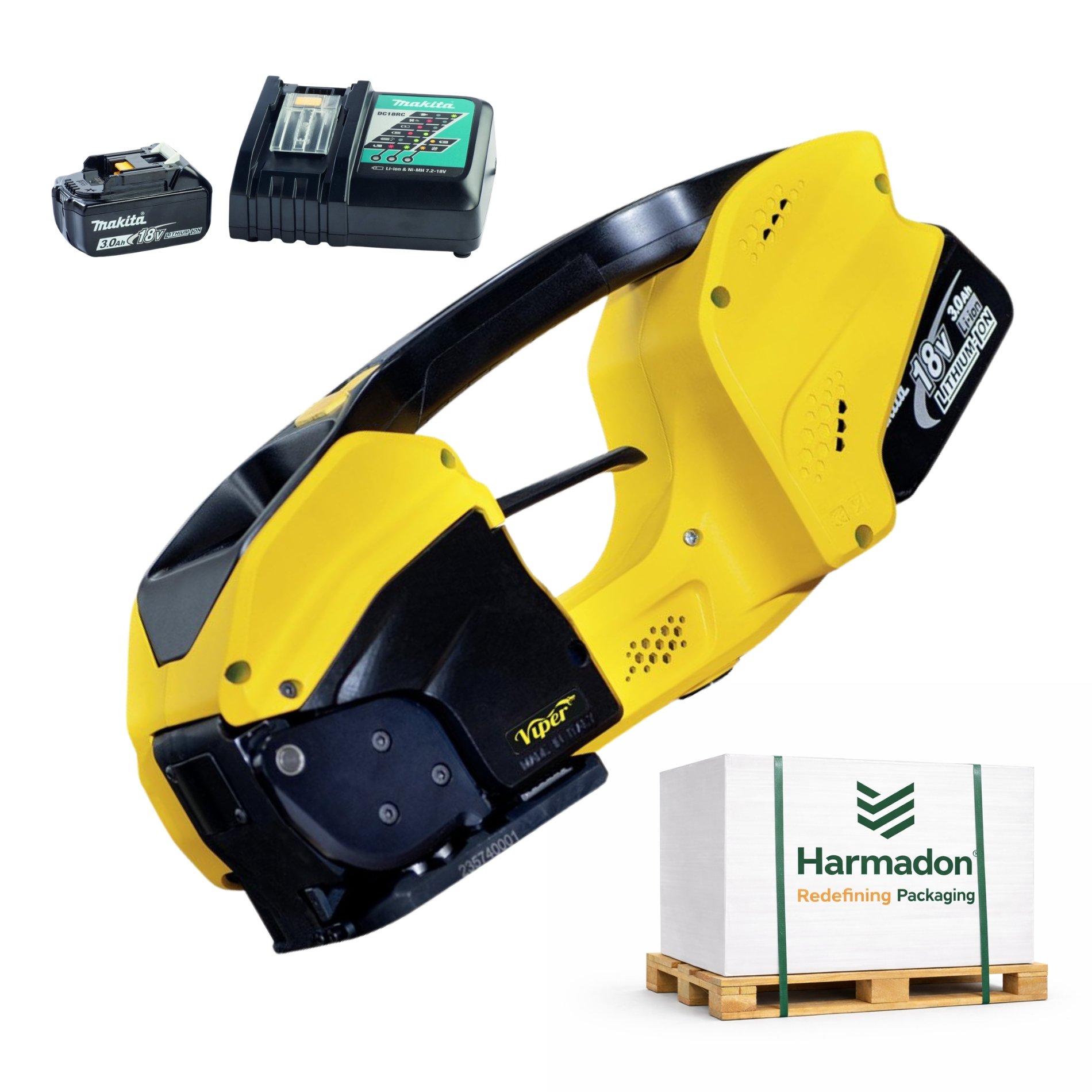Urządzenie zasilane jest akumulatorowo, co zapewnia pełną mobilność, wygodę pracy oraz niezależność od źródeł zasilania. Bandownica Viper umożliwia szybkie i pewne spinanie paczek, kartonów oraz palet za pomocą trwałego zgrzewu wibracyjnego.