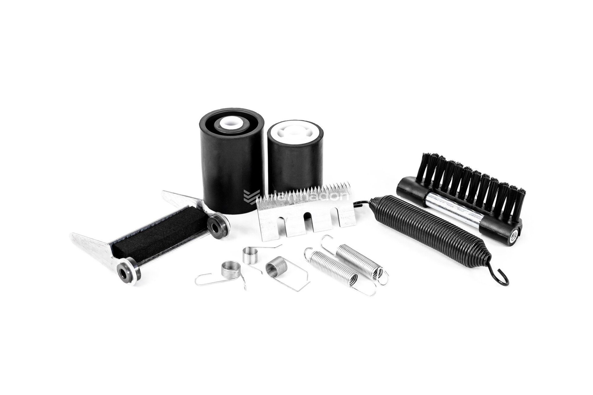 Kompletny zestaw części zamiennych dedykowany do głowicy dolnej owijarki SIAT modeli K11 i K11R. Zestaw zawiera wszystkie niezbędne elementy do pełnej konserwacji i naprawy, zapewniając długą i bezproblemową eksploatację urządzenia. W skład zestawu wchodzi 14 wysokiej jakości komponentów, w tym rolki wejściowe i wyjściowe, sprężyny, ostrza, elementy ochronne oraz szczotki.