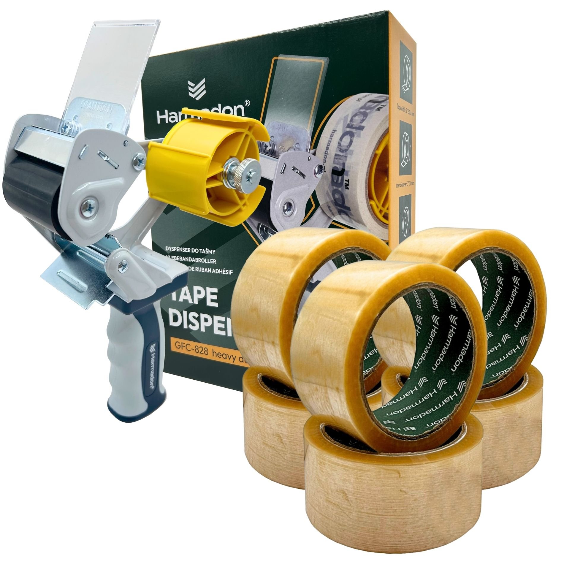 Zestaw do klejenia: Dyspenser Harmadon 828 + 6 Taśm Klejących 48x66m TRANSPARENT – Solvent